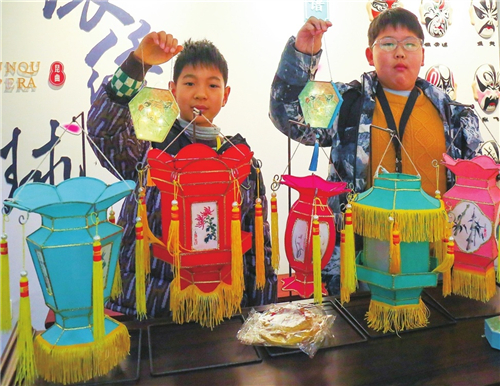 昨日,中国昆曲博物馆,苏州灯彩市级非遗代表性传承人汪丽秋为小学生讲解苏州灯彩知识,并教授昆曲题材新苏灯制作技艺。阙明芬摄 (视觉苏州供图)