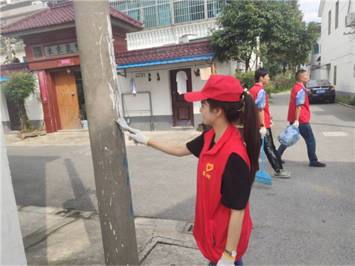 7月5日清晨,牛桥村里一番热闹景象?!罢庑」愀婢拖窆菲じ嘁?,铲掉之后看着都舒服多了!”路过的村民罗阿姨忍不住驻足称赞。只见志愿者黄大姐从工具包中拿出喷壶,喷洒润湿电线杆上的小广告,铲子随后跟上,动作一气呵成。大家背着工具包,一路走去,捡拾垃圾、铲除小广告、粉刷乱涂乱画……一起守护“净美”家园。