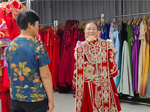 “这些婚纱都是爱心人士和企业捐赠的,居民只要支付50元清洁费就能免费借用,比外面动辄几千元的租赁费划算多了!”工作人员的介绍让居民们眼前一亮,大家纷纷驻足抚摸婚纱,询问借用流程。