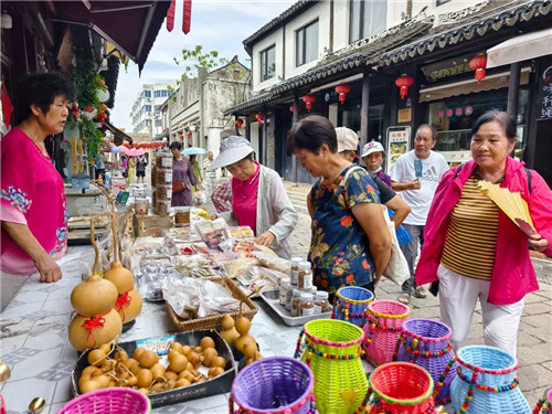 参观完半泾村后,大家前往沙溪古镇,沿着青石板路感受传统与现代的融合。古镇街巷中,“移风易俗 拒绝铺张”的宣传海报与古建筑、老砖雕相映成趣,路过一家百年糕点铺,老板笑着说:“现在我们这边的人都喜欢来买传统喜糖糕点,既好吃又有意义,比那些华而不实的礼盒强多了!”这些细节让大家深刻体会到,移风易俗不是否定传统,而是用现代文明理念激活传统的生命力。